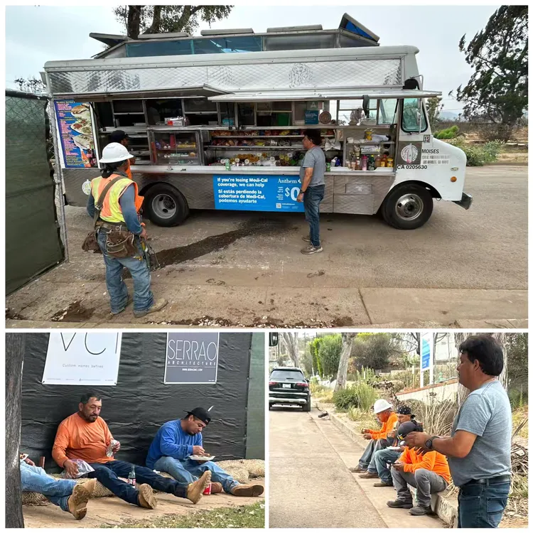 中午时分会有专售南美热食的夫妻档餐车驶入区域,将停之前先会按一下喇叭,近旁工地上的工人听到后就会从各个地点冒出头来,聚集而去。