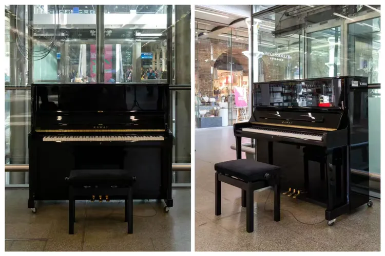 在我5月离开伦敦仅仅两个月后,2025年7月18日,车站官宣:“今天,圣潘克拉斯车站正式宣布引入一崭新Kawai K‑500立式钢琴,它已被安置在主拱廊大厅中央。这架新钢琴将与2024年由安德鲁.韦伯音乐团队捐赠的 “幽灵钢琴” 一同展出。”