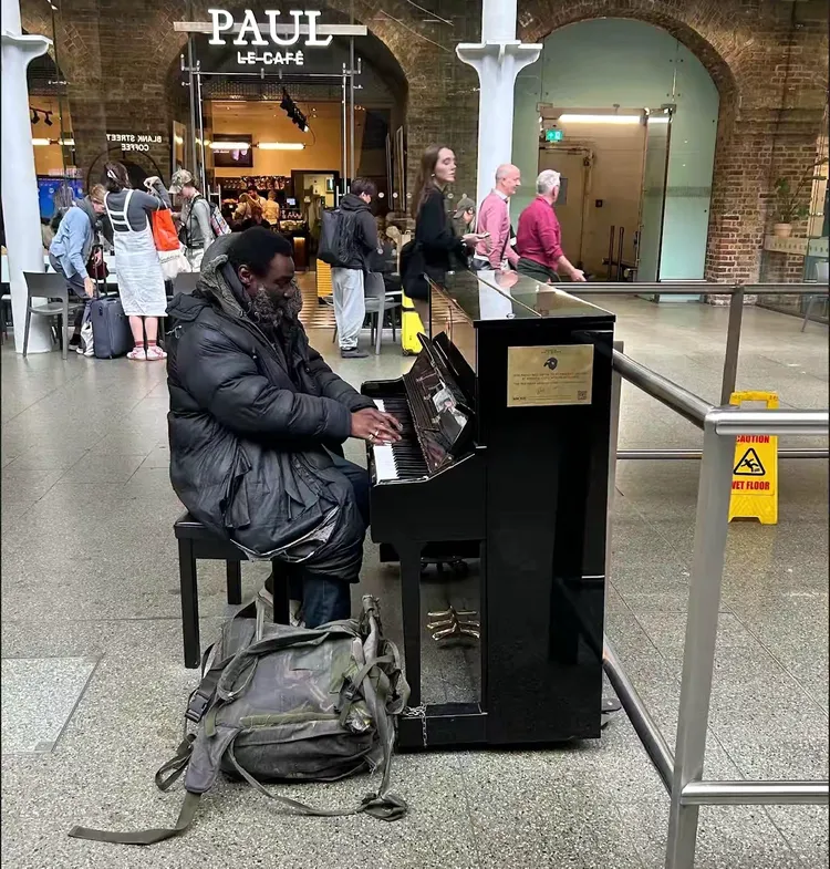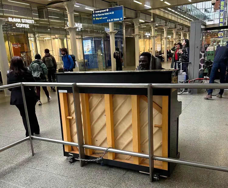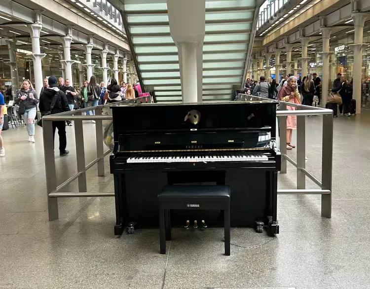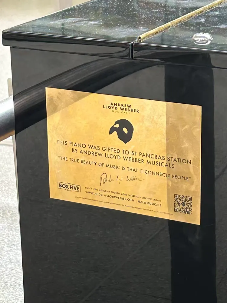 确切地说,我在圣潘克拉斯车站见到的钢琴不是埃尔顿.约翰捐赠的那架,而是由英国音乐人安德鲁.韦伯音乐团队捐赠。记载中,前者在车站停放了8年后,于2024年的年末被站方公告送往雅马哈工厂维修。