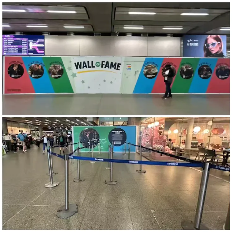 (2019年7月6日,著名的英国变装皇后Ophelia Love和Kitty Scott Claus圣潘克拉斯车站举办了一场流行歌曲表演,旨在为LGBTQ慈善机构METRO筹集善款。)