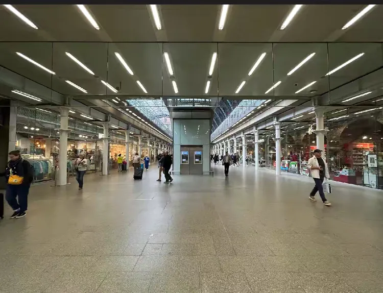 (伦敦圣潘克拉斯车站车站玻璃大厅部分。)