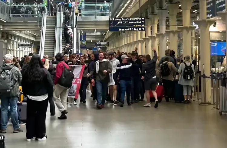 (圣潘克拉斯车站不时能看到示威的场面。)
