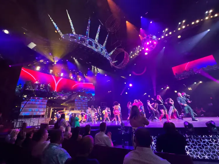 《愤怒的苹果》于2022年5月上线,正式取代《祖曼尼蒂》。我这次看完之后不得不说,这台驻场秀极为糊弄,其演出主旨想表现的纽约味道倒是与所在赌场贴合,他们也罗列了太阳马戏团的花式全套:高空杂技、现场乐队、舞蹈魔术之类,但成品看上去效果差强人意,只把太阳马戏团闻名于世的神奇创意和高难技艺表现了皮毛。