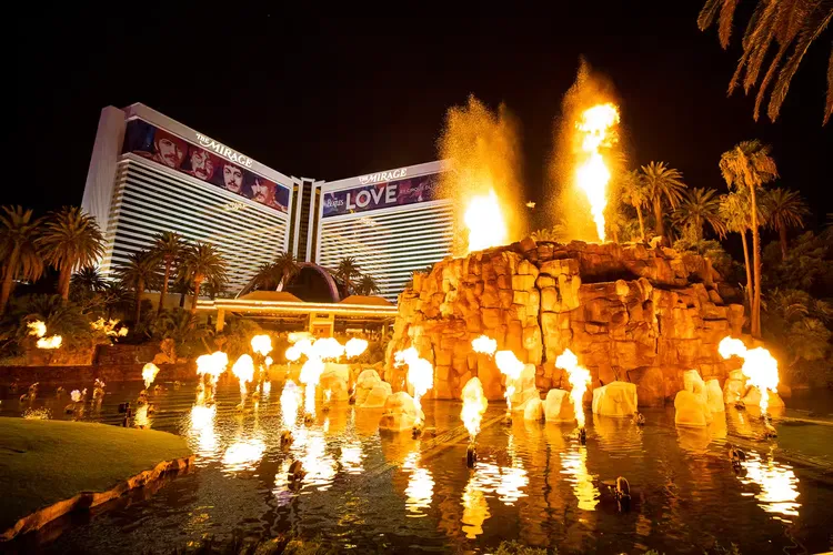 美丽湖是个凭借人造喷火火山、海豚栖息及热带森林展示等独特设施取胜的酒店赌场,持续几十年都非常扎眼,曾经引领90年代拉维加斯酷炫风潮。
