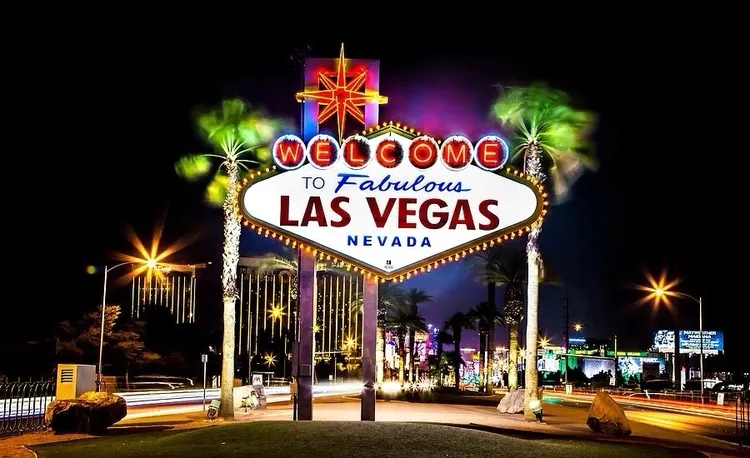 (这是著名的“欢迎来到美丽的拉斯维加斯(Welcome to Fabulous Las Vegas)”招牌,建于1959年,由西方霓虹灯公司(Western Neon)制作设立。这座招牌现今仍矗立在拉斯维加斯大道南5100号的中央分隔岛上,称为城市地标。)