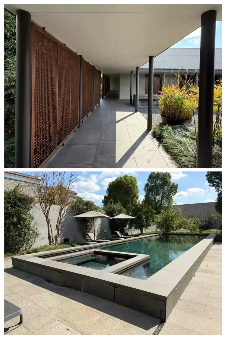 整个8号院有泳池波光有芳草疯长,除古宅外,院内的4户“明.客居”面面正对,龟缩于大院一隅,像是古时大家族中的偏房住处。