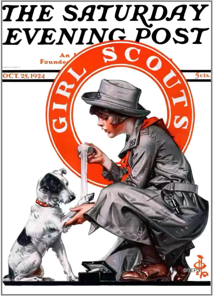 (当年最著名的《星期六晚邮报》上著名漫画家罗克韦尔笔下的女童军。)