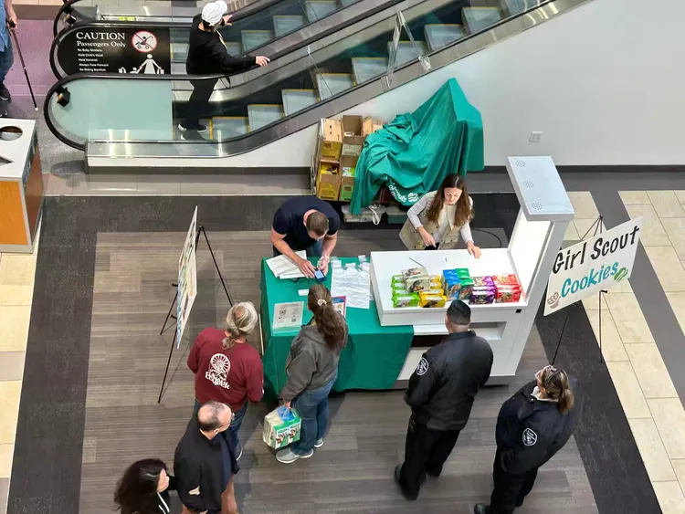 2月初的某天我在南加州橙县Brea商场的扶梯旁,看到一对父女支了个临时柜台在卖东西,扫见女孩所穿制服我想都没想就知道他们是在为女童军义卖饼干。
